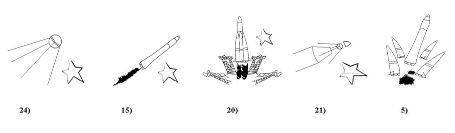 Расставьте этапы (см. рисунок ниже) космического полета спутника Земли в правильном порядке и запишите их числовые значения.